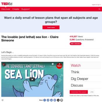 TED-Ed Lesson: Sunning themselves on rocks or waddling awkwardly across the beach, it’s easy to think of sea lions more as sea house cats. But don’t be fooled by their beachside behavior. Under the waves, sea lions are incredible endurance hunters, reaching speeds of 18 miles an hour and hunting for…