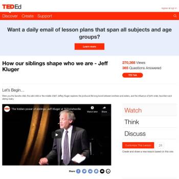 TED-Ed Lesson: Were you the favorite child, the wild child or the middle child? Jeffrey Kluger explores the profound life-long bond between brothers and sisters, and the influence of birth order, favoritism and sibling rivalry.