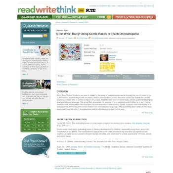 Bam! Beep! Zoom! Students are sure to delight in the study of onomatopoetic words through the use of comic strips. In this lesson, students begin with an introduction to onomatopoeia, which describes words that imitate the natural sound associated with an action or object. As a class, students view several comic strips and are guided in identifying examples of onomatopoeia. The group then discusses the purpose of onomatopoeia and its effect in a story before students work individually to find examples of onomatopoeia in other comics. Finally, students work individually or in pairs to create their own comic books that include onomatopoeic language. After presenting their comics to the class, students discuss the use of onomatopoeia and its effectiveness in each comic strip.