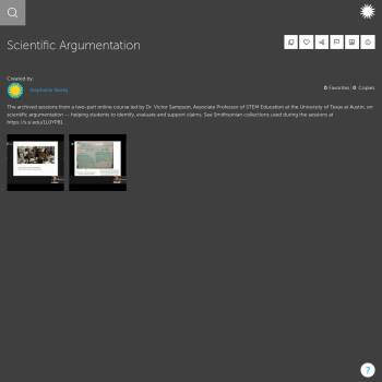 The archived sessions from a two-part online course led by Dr. Victor Sampson, Associate Professor of STEM Education at the University of Texas at Austin, on scientific argumentation -- helping students to identify, evaluate and support claims. See Smithsonian collections used during the sessions at https://s.si.edu/1L0YP81 .