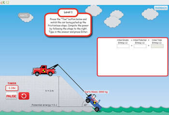 Explore kinetic and potential energy by towing objects up a frictionless slope.