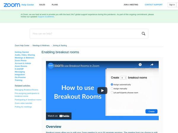 Breakout rooms allow you to split your Zoom meeting in up to 50 separate sessions. The meeting host can choose to split the participants of the meeting into these separate sessions automatically or manually, or they can allow participants to select and enter breakout sessions as they please. The host can switch between sessions at any time.
