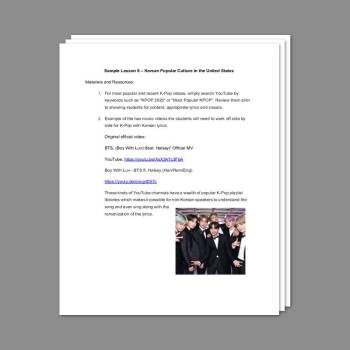 Sample Lesson 6 - Korean Popular Culture in the United States: Resources and Materials
