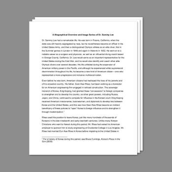 This biographic series document and image series for Dr. Lee supports Sample Lesson 5 of the Korean American model curriculum.