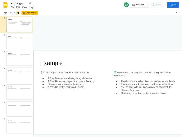 Example ❓What do you think makes a fossil a fossil? A fossil was once a living thing - Mikayla A fossil is in the shape of a bone - Gerardo Dinosaurs are fossils - Jeremiah A fossil is really, really old - Scott ❓What are some ways you could distinguish fossils from rocks? Fossils are smoother th...