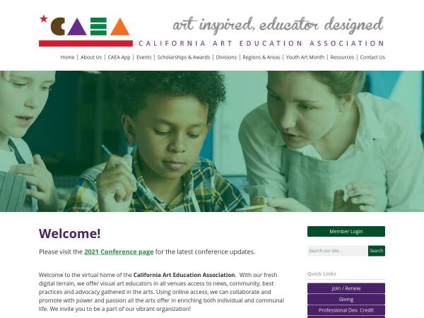Welcome to the virtual home of the California Art Education Association. With our fresh digital terrain, we offer visual art educators in all venues access to news, community, best practices and advocacy gathered in the arts. Using online access, we can collaborate and promote with power and passion all the arts offer in enriching both individual and communal life. We invite you to be a part of our vibrant organization!