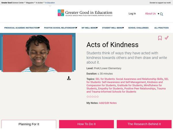 In this activity, students think of ways they have acted with kindness towards others and then draw and write about it.