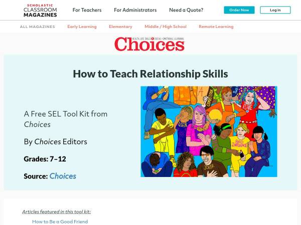In this Scholastic resource, each topic below has an article with accompanying prompts and worksheets that explicitly teach and reinforce relationship skills.