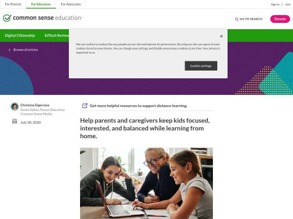 This article from Common Sense media provides helpful tips and tricks for keeping kids focused, interested and balanced while learning from home.