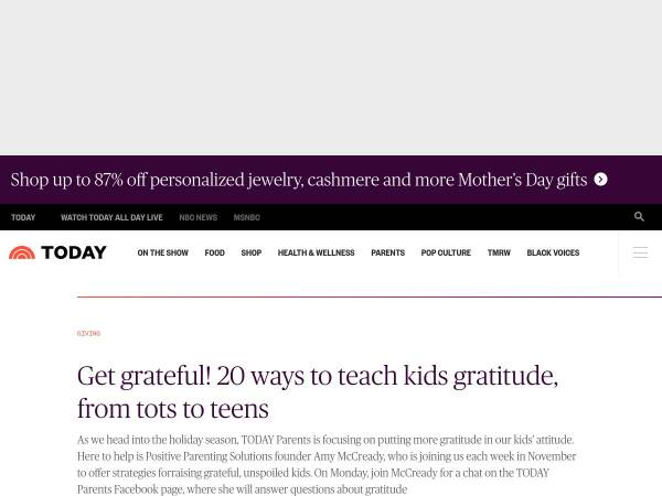 NBC article with multiple gratitude activities for the family from early childhood to teens