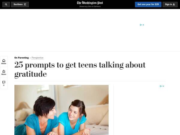 Washington Post article with tips for how to talk to teens about gratitude