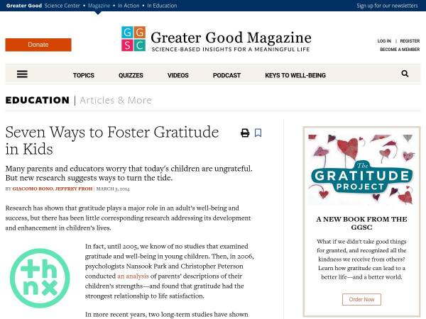Article with video clips by GGSC outlining ways both parents and educators can foster gratitude in kids.