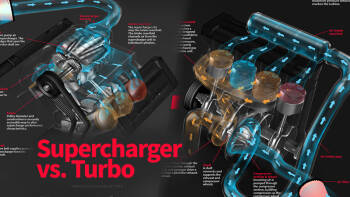 Supercharger vs Turbo The basic function of both superchargers and turbos is to deliver more air to an engine’s internal combustion process. Air filter Air intake pipe Intake manifold The supercharger sits atop the intake manifold. The intake manifold chann
