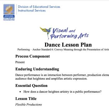 - 5.DA:Pr6b Identify, explore, and select production elements that heighten and intensify the artistic intent of a dance and are adaptable for various performance spaces.