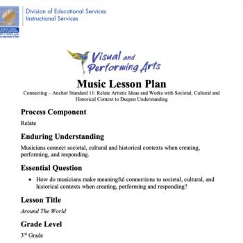 3rd Grade Music Lesson Plan developed by Riverside County Office of Education.