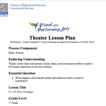 1st Grade Theater Lesson Plan developed by Riverside County Office of Education