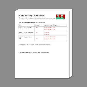 The Blood Typing Game - Teacher Answer Key
